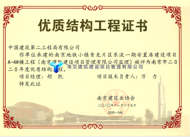地鐵小鎮項目2號樓榮獲優(yōu)質(zhì)結構工程證書(shū)