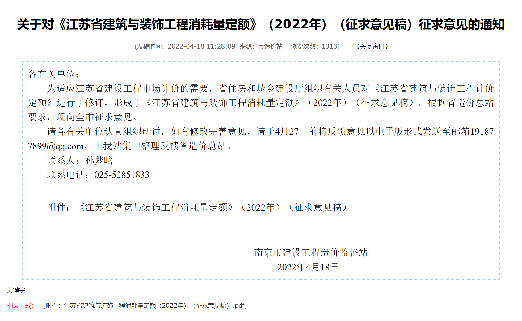 轉(zhuǎn)發(fā)關(guān)于對(duì)《江蘇省建筑與裝飾工程消耗量定額》(2022年) (征求意見(jiàn)稿) 征求意見(jiàn)的通知,其下載連接如下所示: