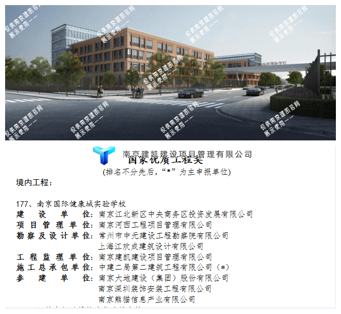 熱烈祝賀我司南京國家健康城實(shí)驗學(xué)校項目監理部榮獲“國家優(yōu)質(zhì)工程獎”
