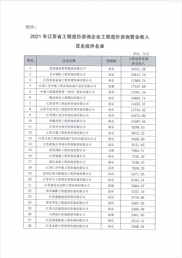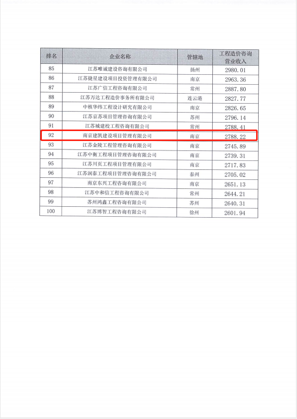 熱烈祝賀我司造價(jià)機構進(jìn)入“2021年江蘇省工程造價(jià)咨詢(xún)企業(yè)工程造價(jià)咨詢(xún)營(yíng)業(yè)收入”百強名單