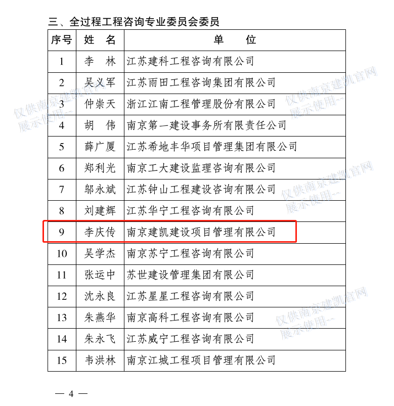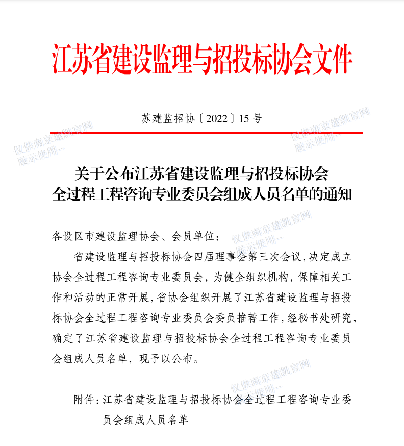 恭喜我司李慶傳同志入選“江蘇省建設監理與招投標協(xié)會(huì )全過(guò)程工作咨詢(xún)專(zhuān)業(yè)委員會(huì )組成人員名單”