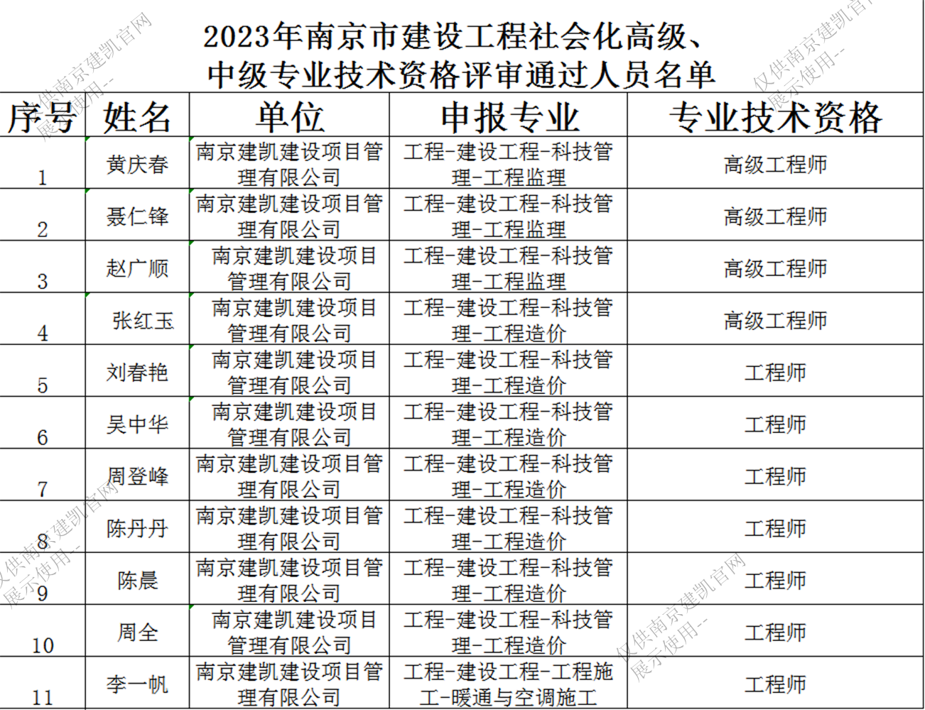 恭喜我司以下人員通過(guò)2023年南京市建設工程社會(huì )化高級、 中級專(zhuān)業(yè)技術(shù)資格評審