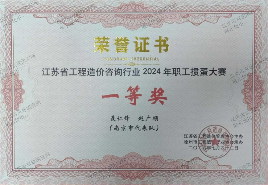 熱烈祝賀我司榮獲“江蘇省工程造價(jià)咨詢(xún)行業(yè)2024年職工摜蛋大賽一等獎”