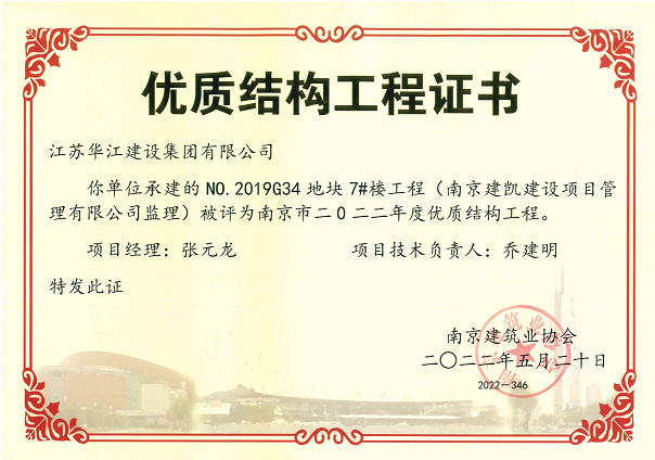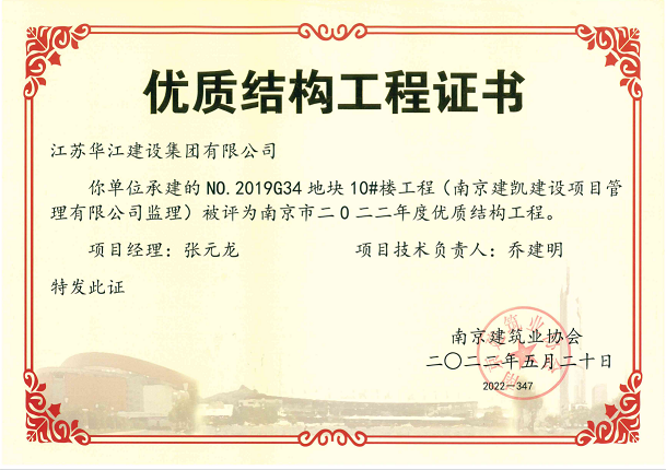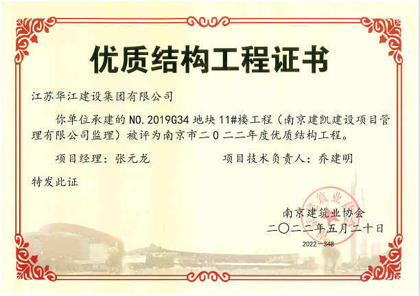 (2022年5月20日)NO.2019G34項目7#樓、10#樓、11#樓榮獲《南京市2022年度優(yōu)質(zhì)結構工程》
