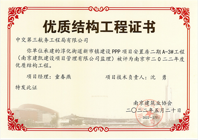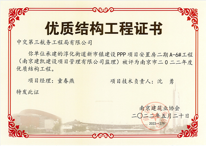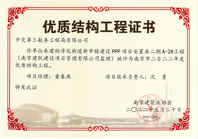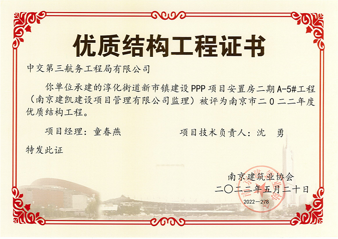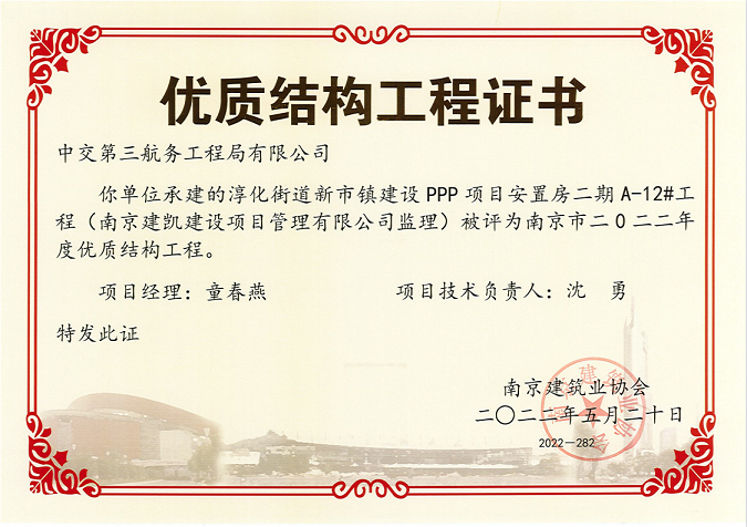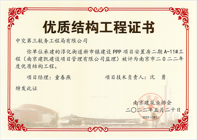 (2022年05月20日)淳化街道新市鎮建設PPP項目安置房二期項目榮獲《南京市2022年度優(yōu)質(zhì)結構工程》