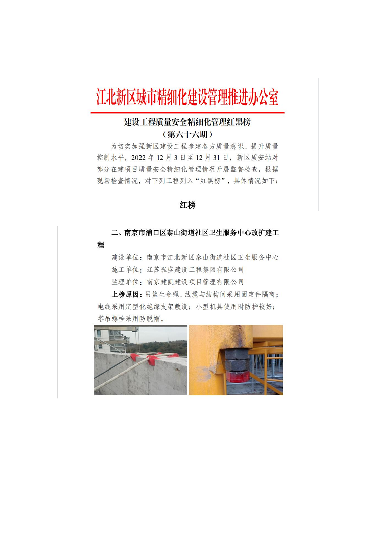 (2023年1月11日)南京市浦口區泰山街道社區衛生服務(wù)中心改擴建工程榮獲《建設工程質(zhì)量安全精細化管理紅榜》