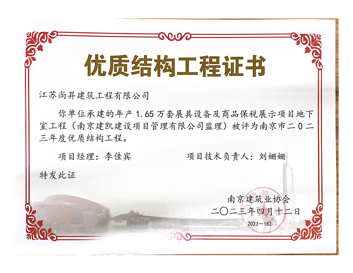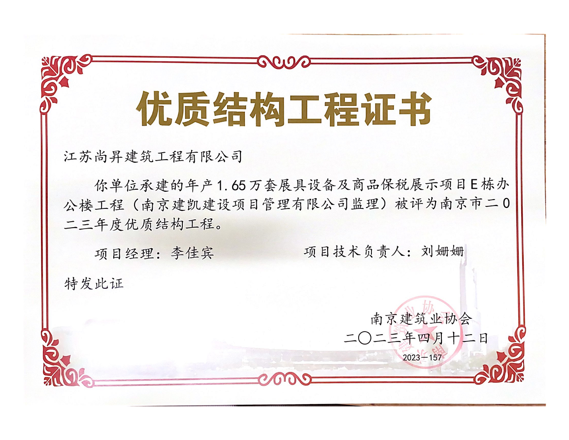 年產(chǎn)1.65萬(wàn)套展具設備及商品保稅展示項榮獲“2023年度優(yōu)質(zhì)結構工程”